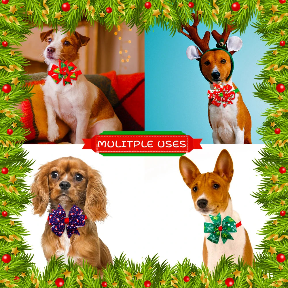 50PCS Dog Christmas Accessories Dog Bow Tie Pet Dog Cat Xmas Bowties Neckties Small Dog Holiday Party Grooming Accessores