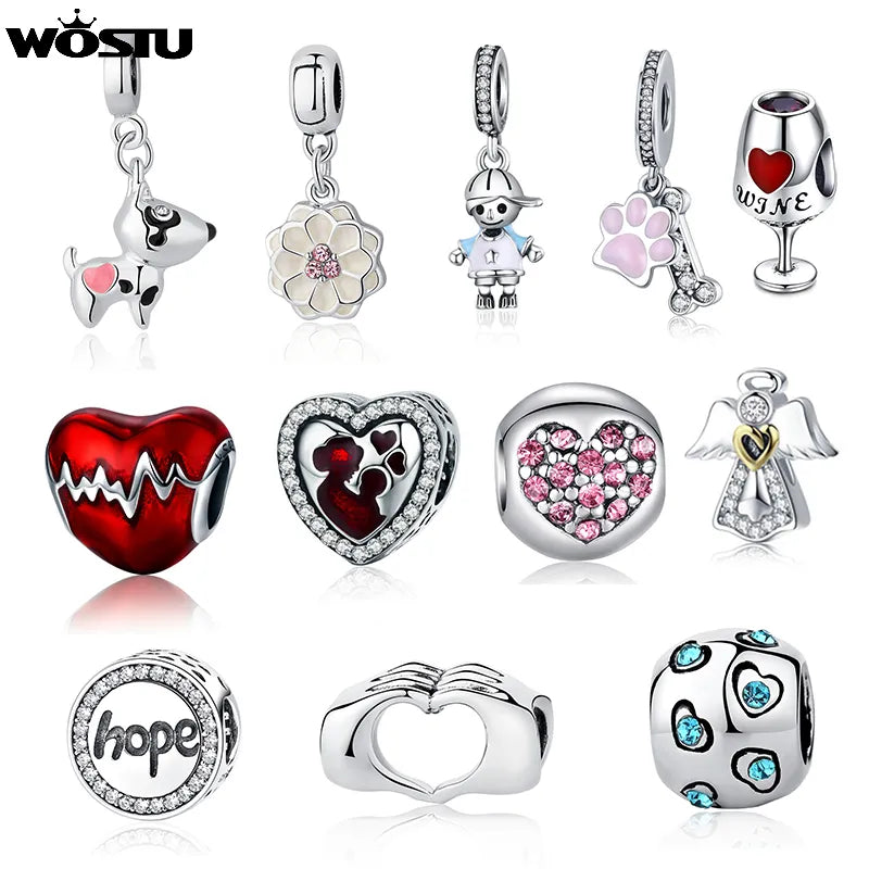 Hot Sale Dog Heart Charm Beads Pendant Fit Original Bracelet Bangle DIY Necklace For Women Girls Wedding Party Jewelry Gifts