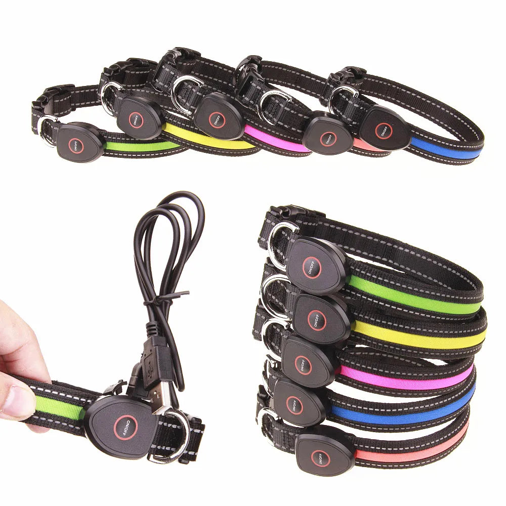 Hot Sale New LED Dog Collar USB Rechargeable For Pets Nylon Led Rechargeable Usb Adjustable Flashing Night Dog Collars Cat Neck