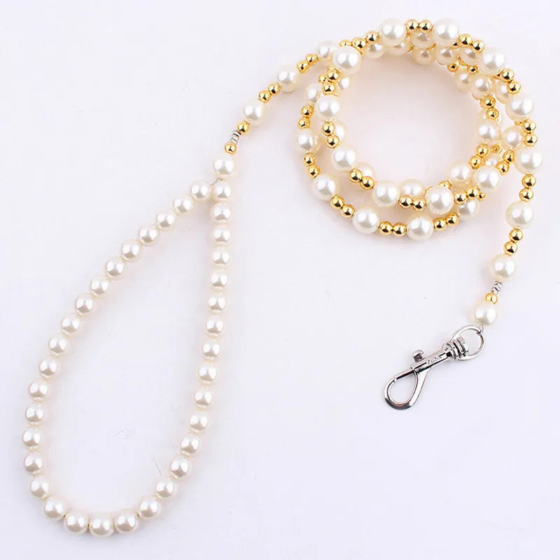Luxury Pearls Beads Dog Leash Chain for Pets White Gold Leash for Dog Walking Dog Cat Collar Accessories Products for Small Dogs
