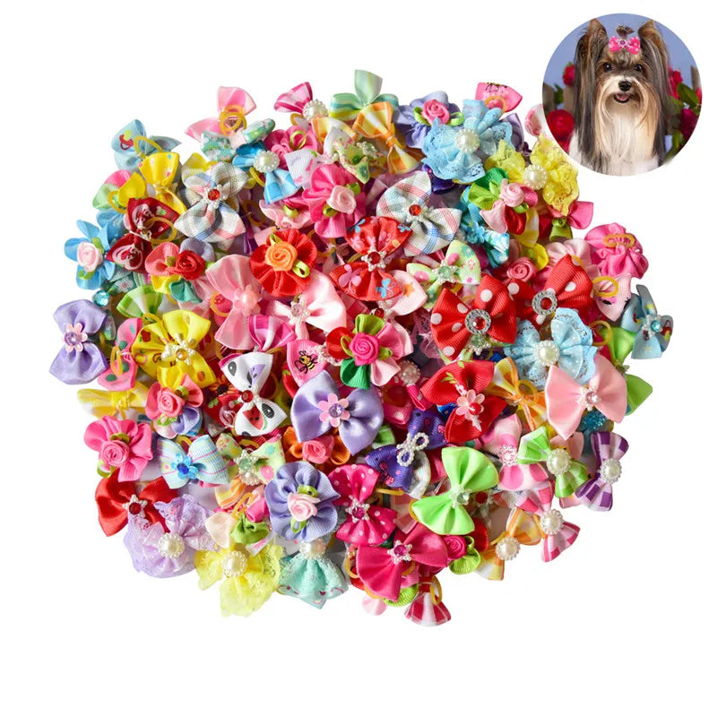 New 100/50/lot Dog Grooming Bows Diamond Pearls Style pet hair bows dog hair accessories pet shop dog acessories