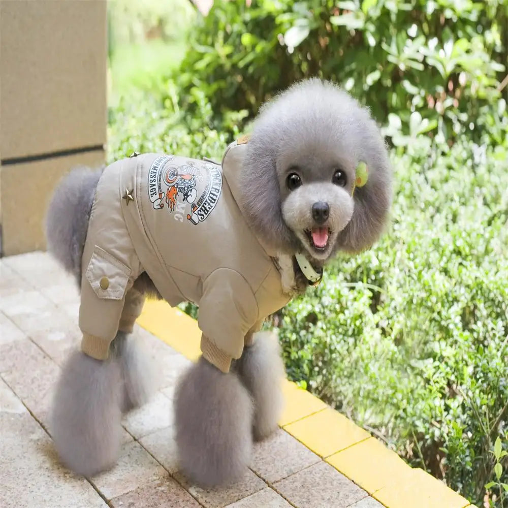 New Thickness Hooded Driver Style Pet Dogs Four Legs Cotton Winter Coat Dog Jumpsuit Warm Small Puppy Dogs Clothing
