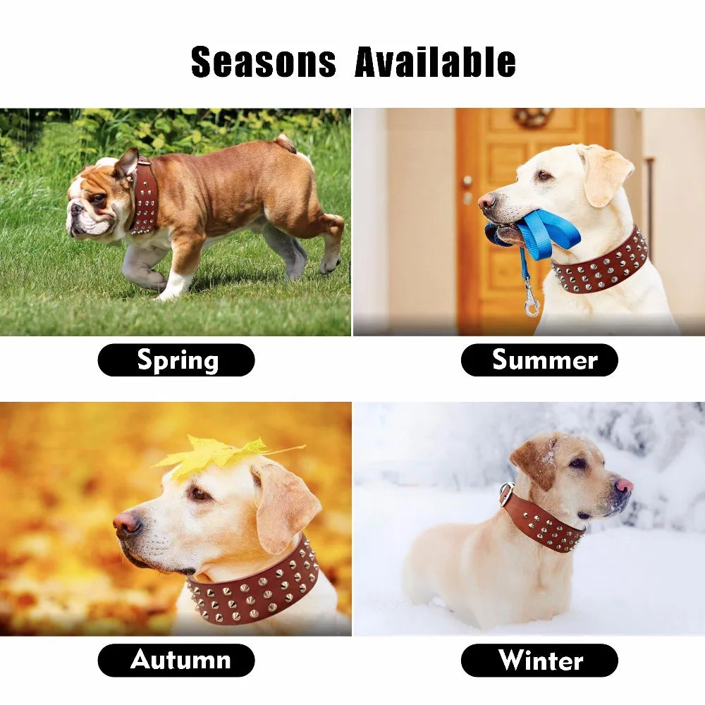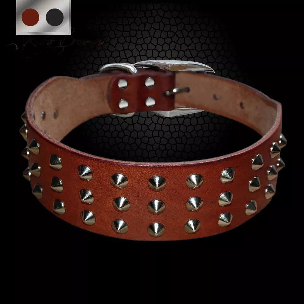 Pug Dog Collar Leather Adjustable Spikes Pet Collar For Small Medium Large Dogs Black Brown Bull Dog coleira