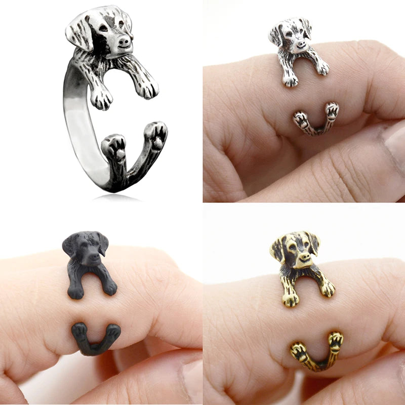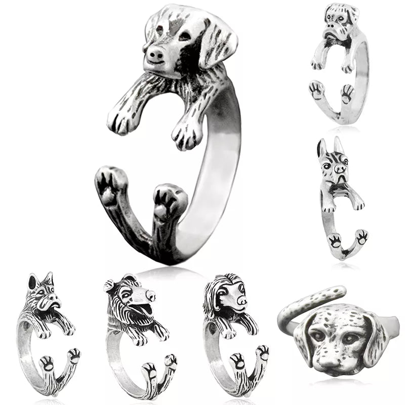 Retro Punk Funny Labrador Retriever Dog Wrap Rings for Women Anel Midi Adjustable Finger Animal Pet Puppy Ring Men Gift Jewelry