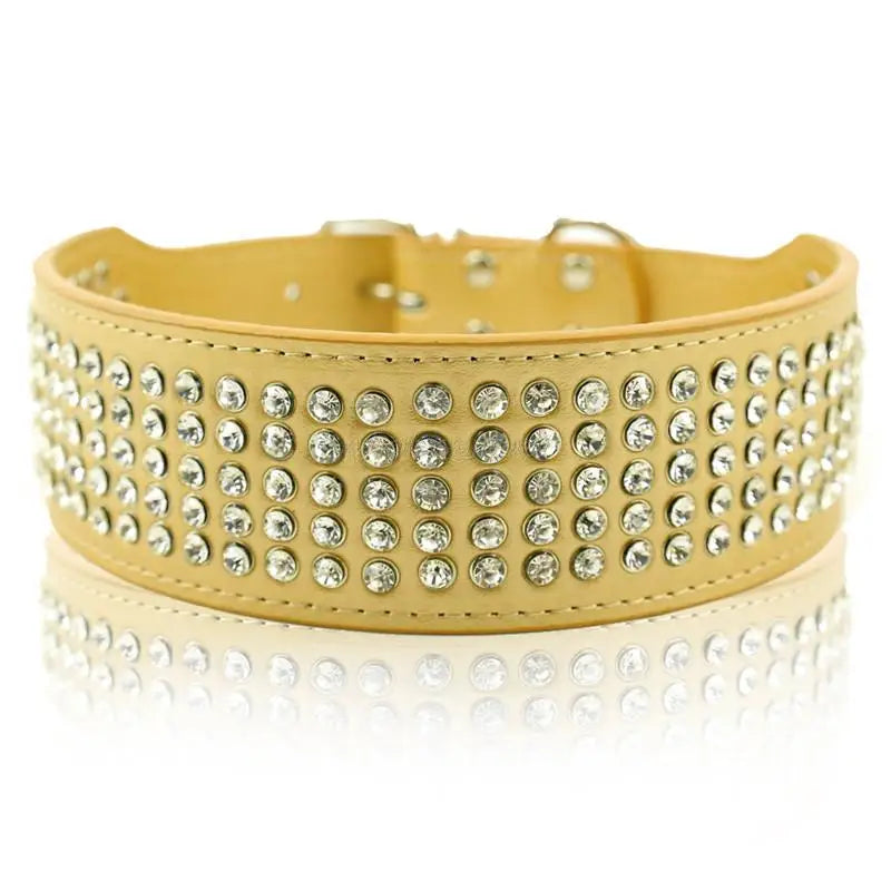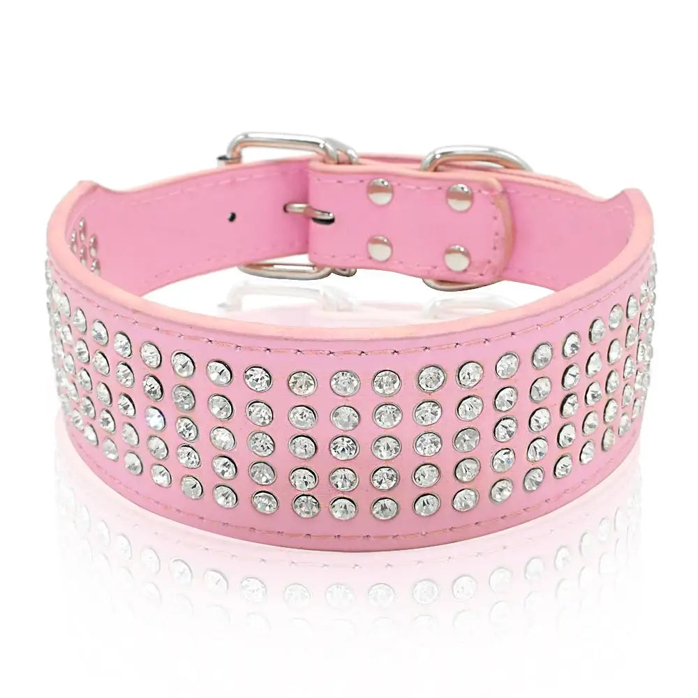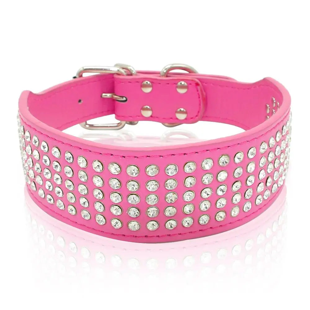 Rhinestone Leather Dog Collars Bling Diamante Crystal Studded Dogs Pet Collars 2inch Wide for Medium & Large Dogs Pitbull Boxer