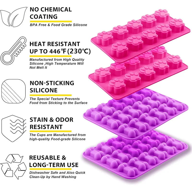Silicone Molds Puppy Dog Paw and Dog Bone Silicone Dog Treat Molds for Baking Chocolate Candy Jelly Ice Cube Tray Dog Treats