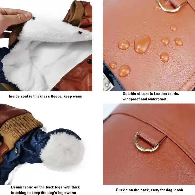 Super Thickness Brown Fashion Handsome Pet Dogs Winter Coat Punk Style Dogs Clothing Warm Jacket Coat For Small Dog Jumpsuit