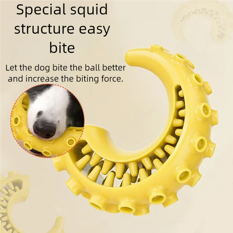 The texture and design of the toy's surface help clean the dog's teeth. When the dog chews, it can rub the tooth surface, remove dental plaque and food residues, prevent oral diseases, and protect the dog's oral health.