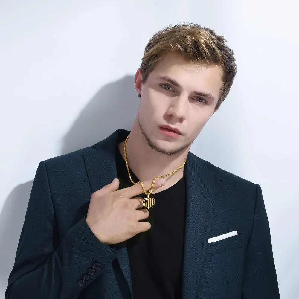 U7 American Flag,USA Patriot Freedom Stars and Stripes 4th of july Dog Tag Pendant Necklace,Gift,Men Jewelry,Stainless Steel,P72